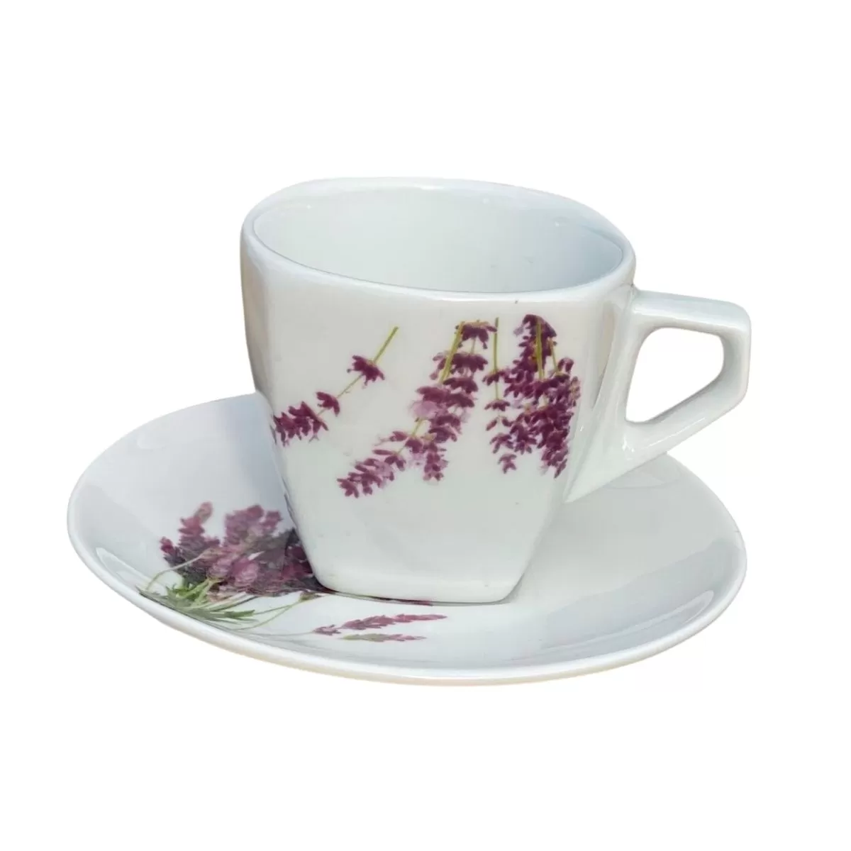 Cappuccino cup and saucer with LAVENDER decoration. The cup has a volume of 250 ml.