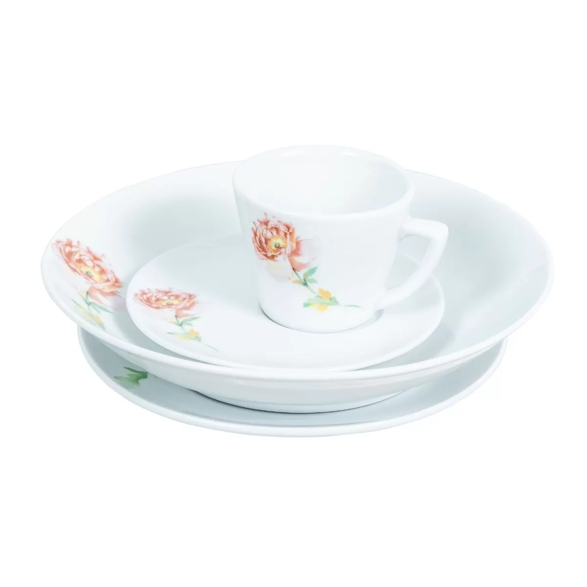 Cappuccino cup and saucer with PEONY decoration. The cup has a volume of 180 ml and the place of the cup on the saucer is on the side allowing you to place the sugar and coffee spoon.