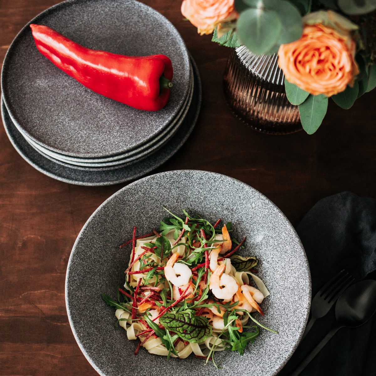 Pair this larger bowl with matching plates from the same collection or with white porcelain plates for an elegant contrast between granite and white. This combination allows you to create stylish and refined sets, perfect for upscale dining experiences in your venue.