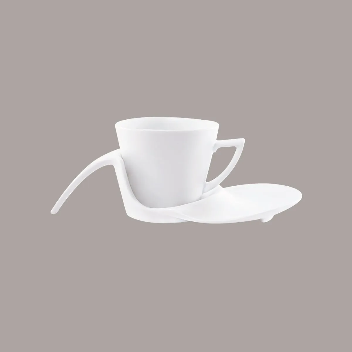 The modern design of the cappuccino cup blends harmoniously with the innovative shape of the saucer. The latter is not just an ordinary support, but a distinctive element, with a dual role: