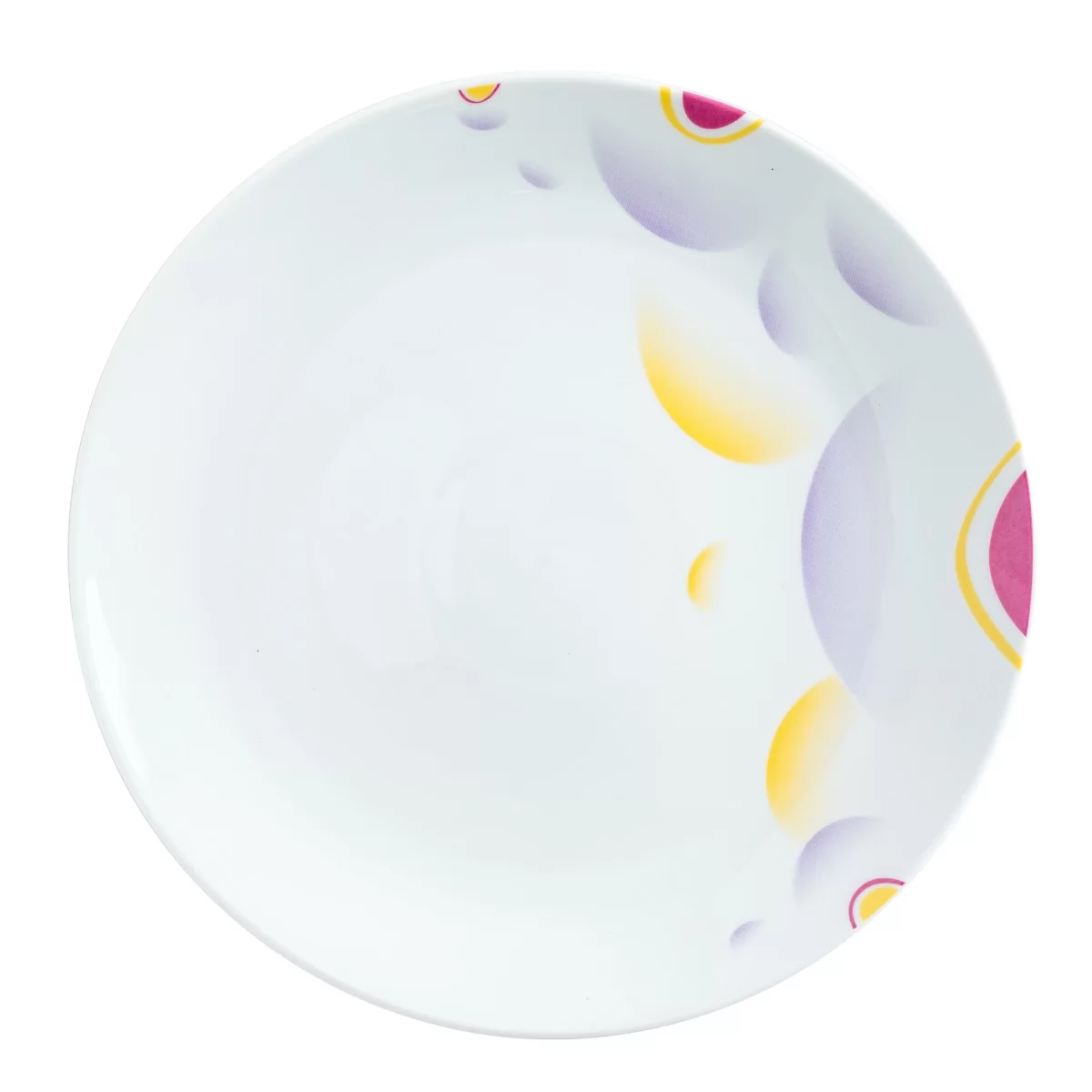 The porcelain dinner set includes: - 6 desert plates diameter 19.5 cm - 6 soup plates diameter 23.5 cm - 6 dinner plates diameter 25.5 cm and 450 ml - one soup bowl diameter 25.5 cm, volume 2100 ml - one tray of 30.5 x 20 x 3.5 cm