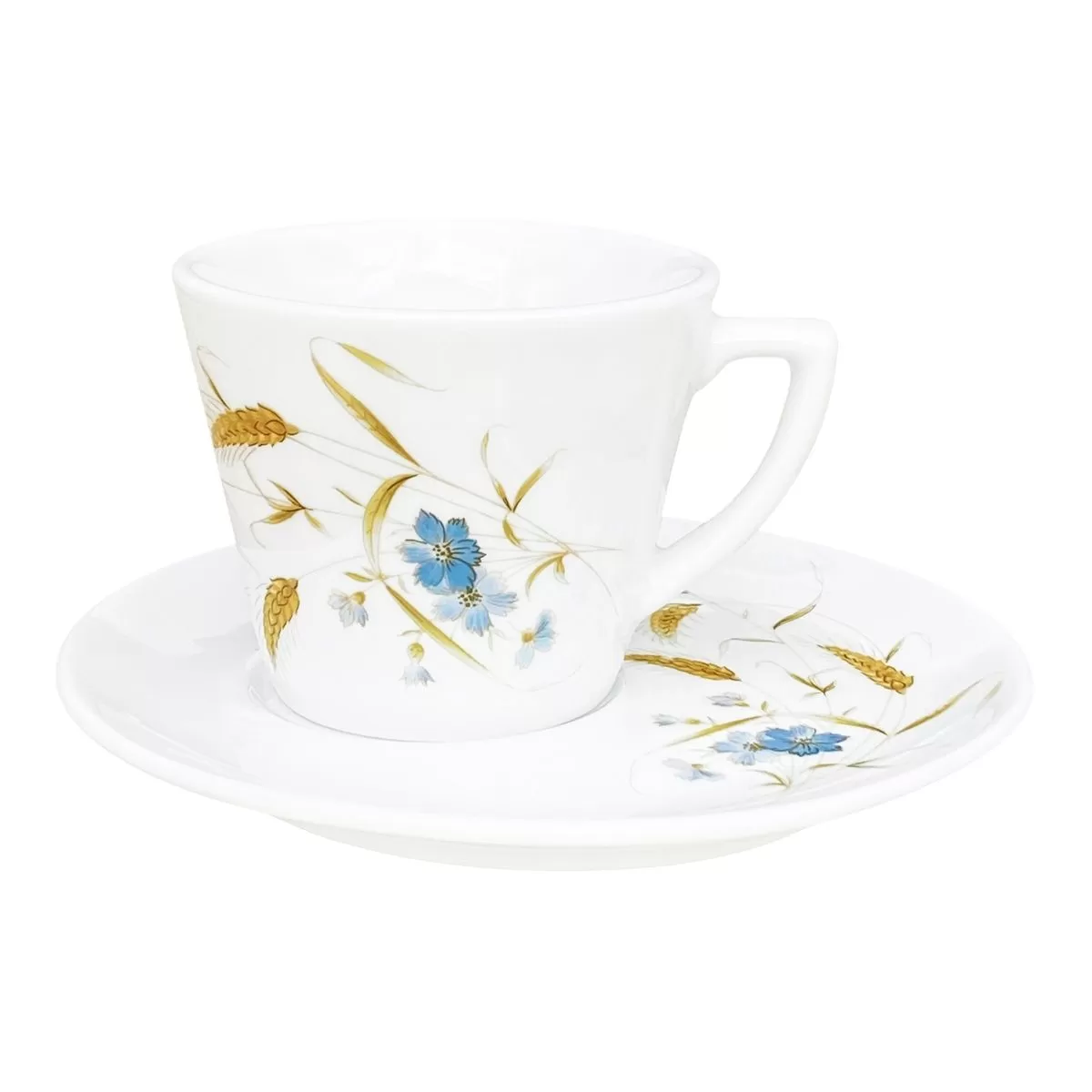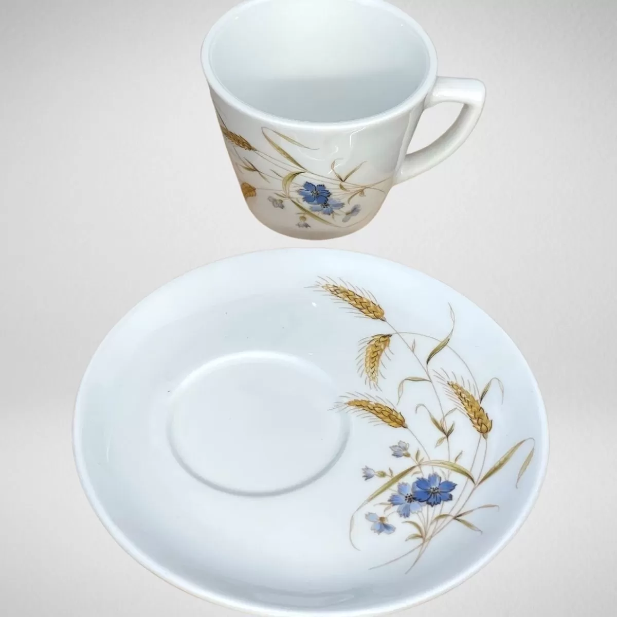 Cappuccino cup and saucer with WHEAT SPICE decoration. The cup has a volume of 180 ml and the place of the cup on the saucer is on the side allowing you to place the sugar and coffee spoon.
