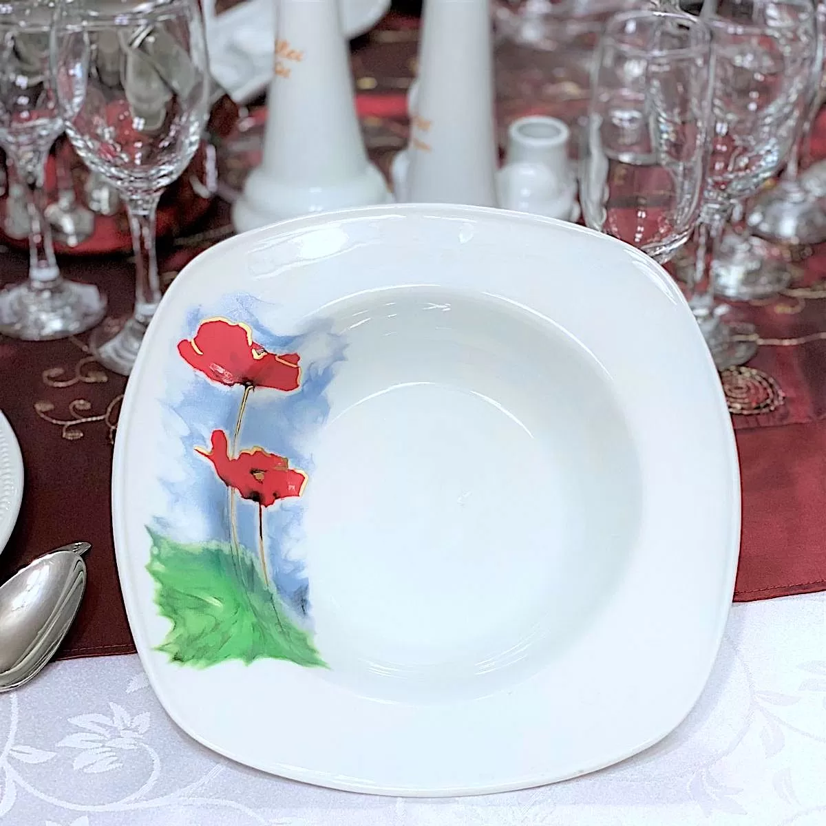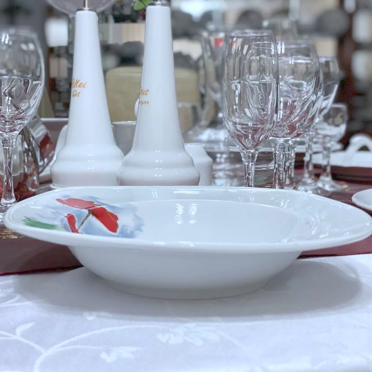 Farfurie supa din portelan decorata cu MAC. Dimensiunea farfuriei 23,5 cm, iar volumul 450 ml.