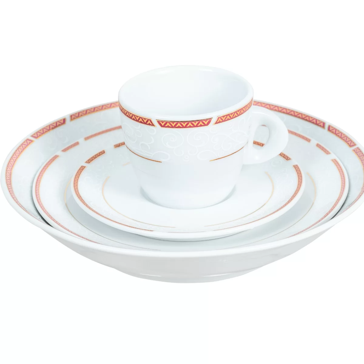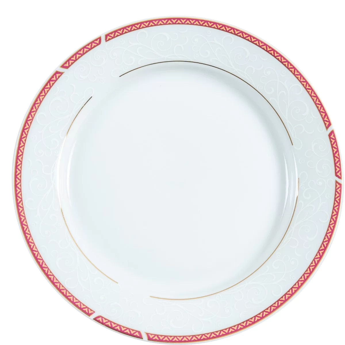 Serviciul de masa din portelan gama contine: - 6 farfurii desert cu diametrul de 19.5 cm - 6 farfurii adanci cu diametrul de 23.5 cm si 450 ml - 6 farfurii intinse cu diametrul de 25.5 cm