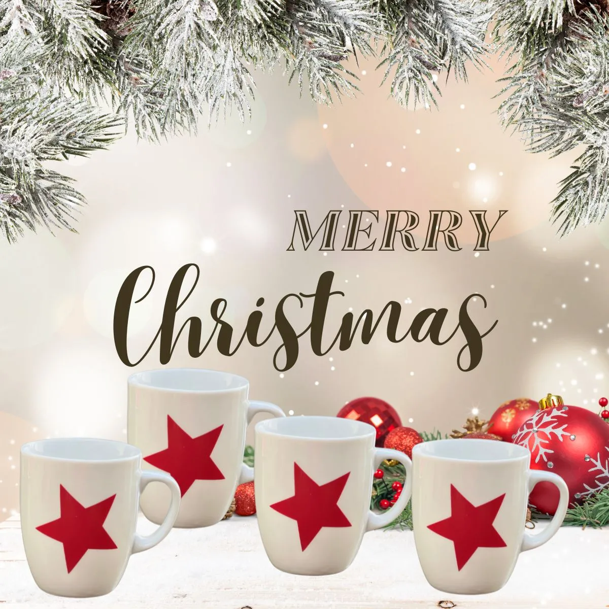 Set 4 cani de ceai cu decor de Craciun pentru sarbatori. Acest set de cesti va adauga farmec serilor de Craciun.