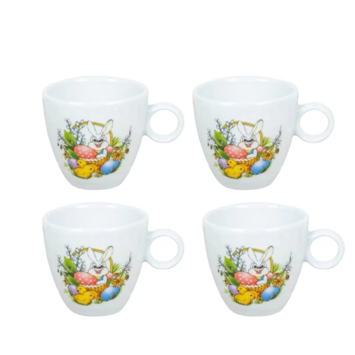 Cestile sunt potrivite pentru impartirea Sfintelor Pasti, dar mai ales vor face placerea celor mici, si nu numai, in perioada sarbatorilor. Setul contine 4 cesti, fiecare cu un volum de 180 ml.