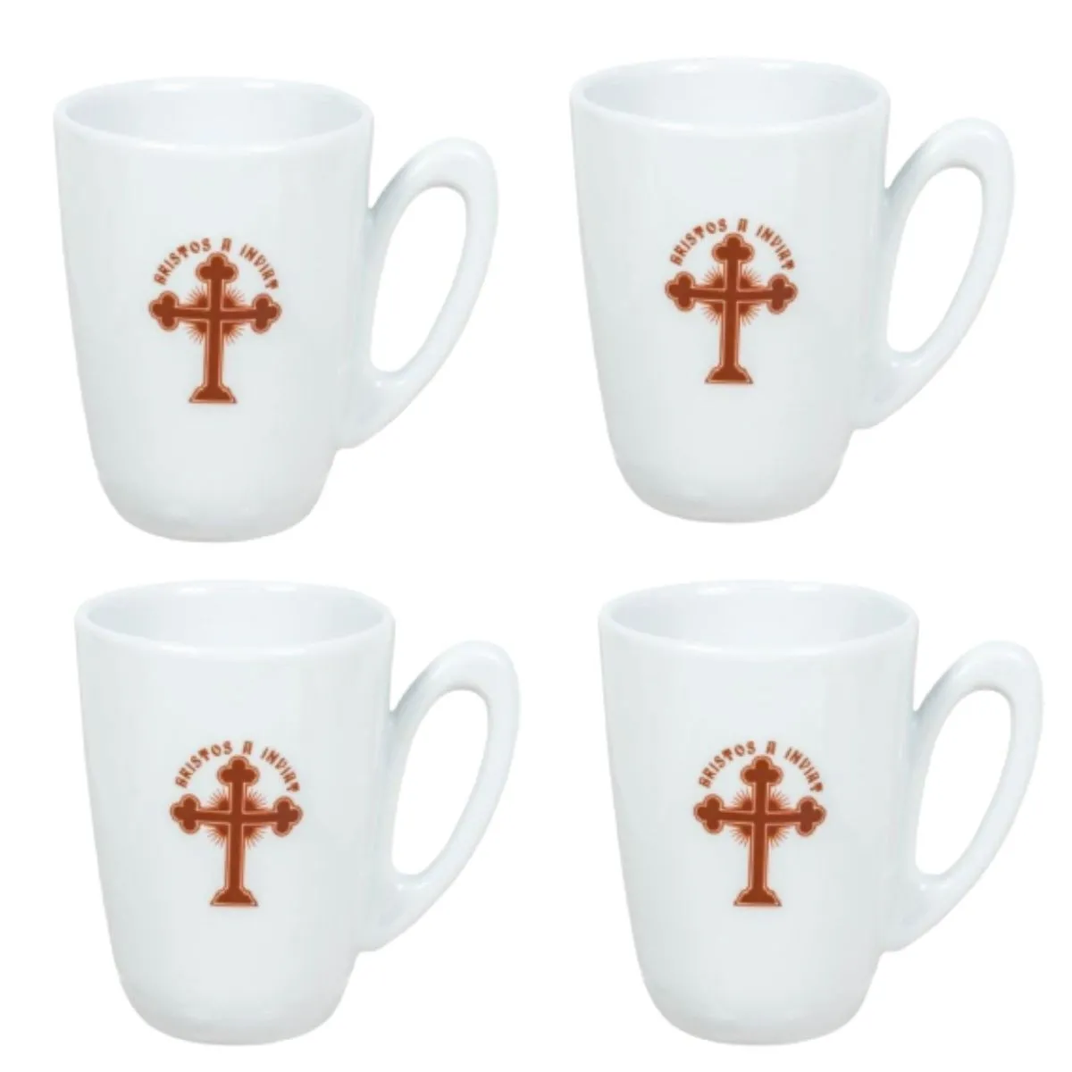 Set cesti din portelan cu decor Cruce de Pasti si mesajul Hristos a Inviat, sunt potrivite pentru impartirea Sfintelor Pasti.