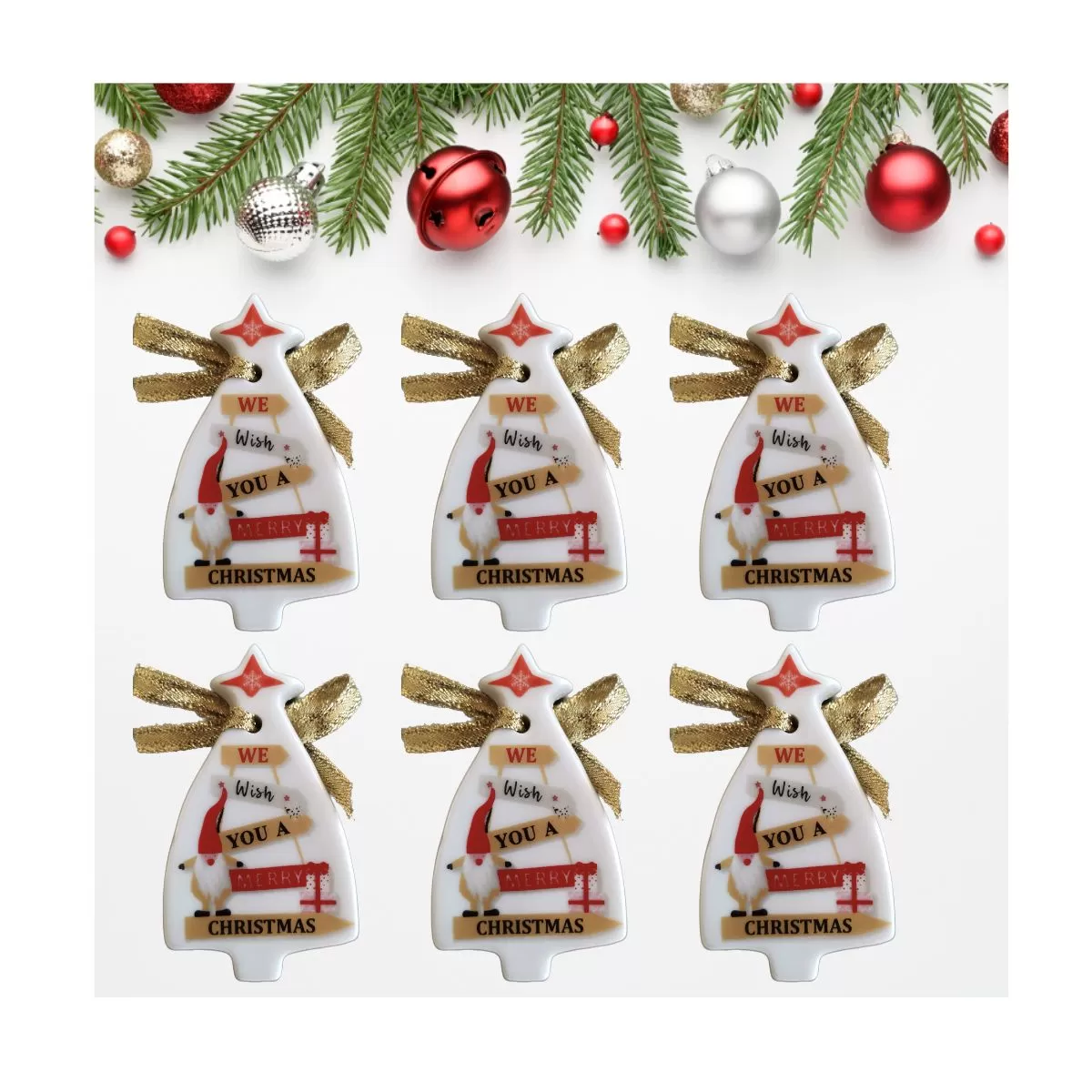 Set 6 brăduți de Crăciun cu mesajul "We wish you a Merry Christmas!"
