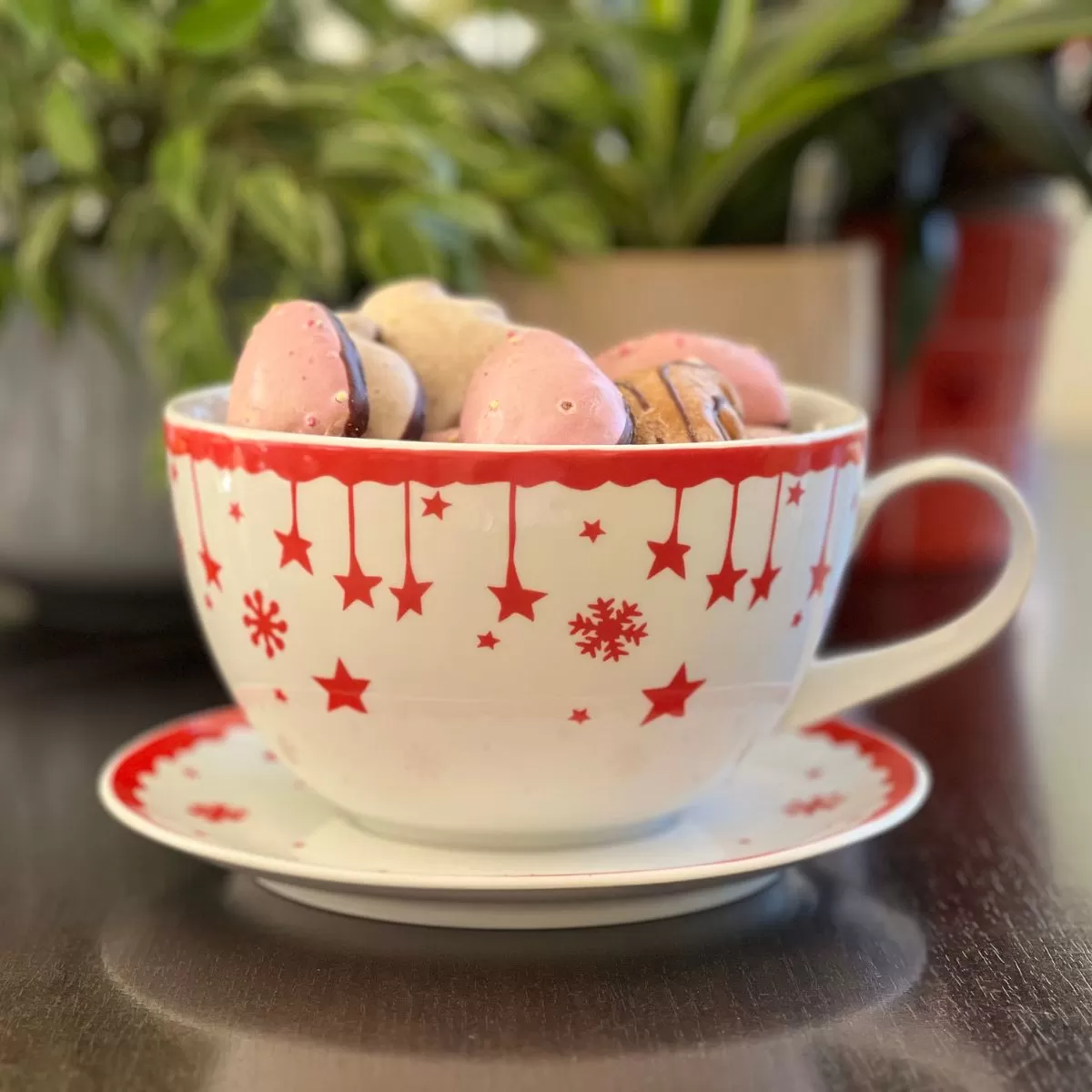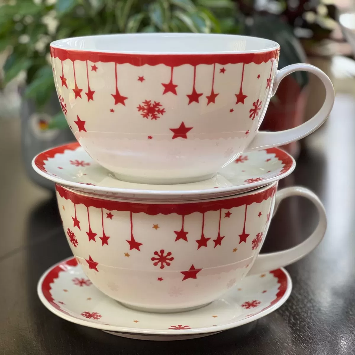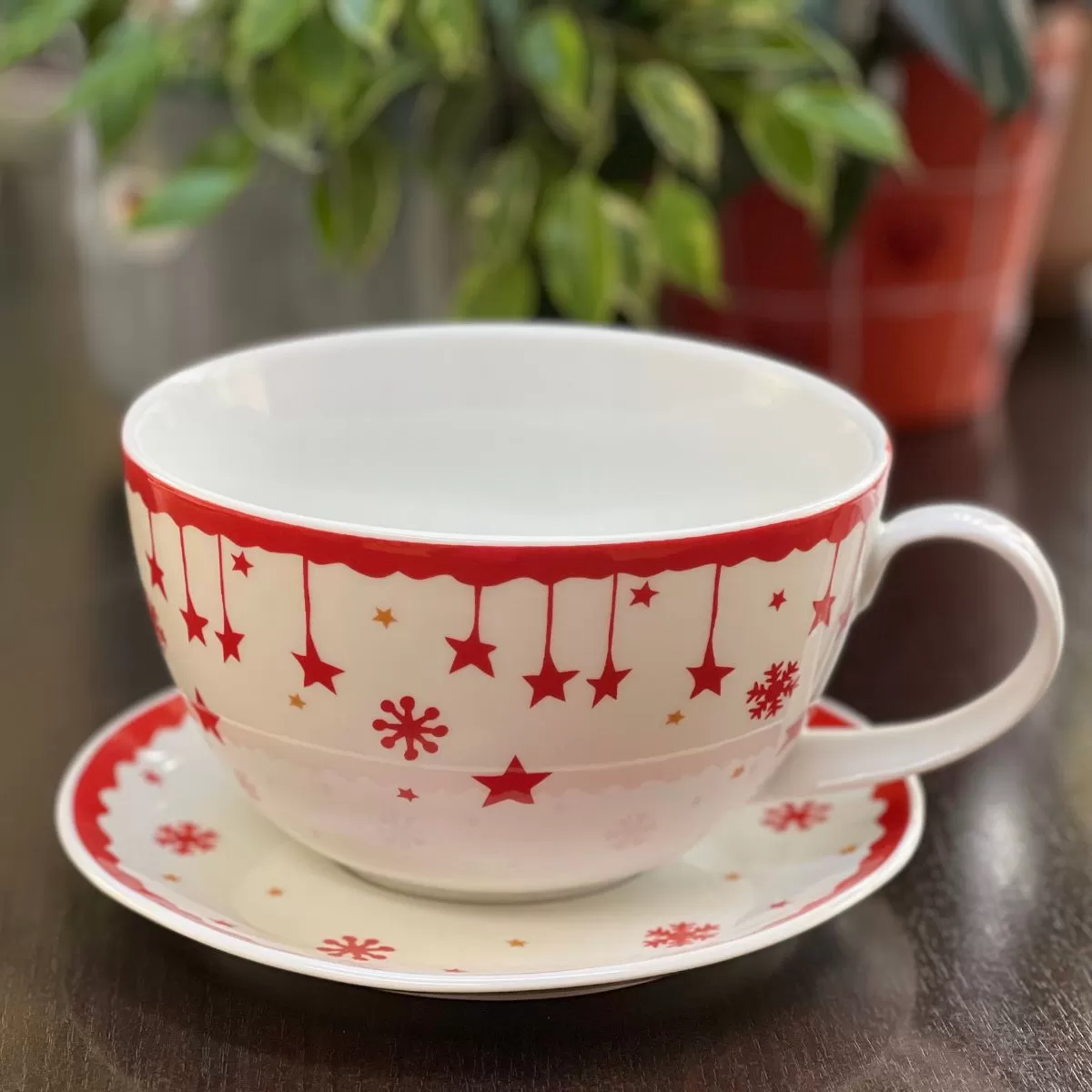 Set ceasca si farfurie cu decor de Craciun pentru sarbatori. Acest set va adauga farmec serilor de sarbatori fiind piesa centrala in aranjamentele dumneavoastra. Se poate utiliza ca decoratiune de Craciun sau suport pentru diverse dulciuri. In acelasi timp setul este perfect pentru cadouri de Craciun.