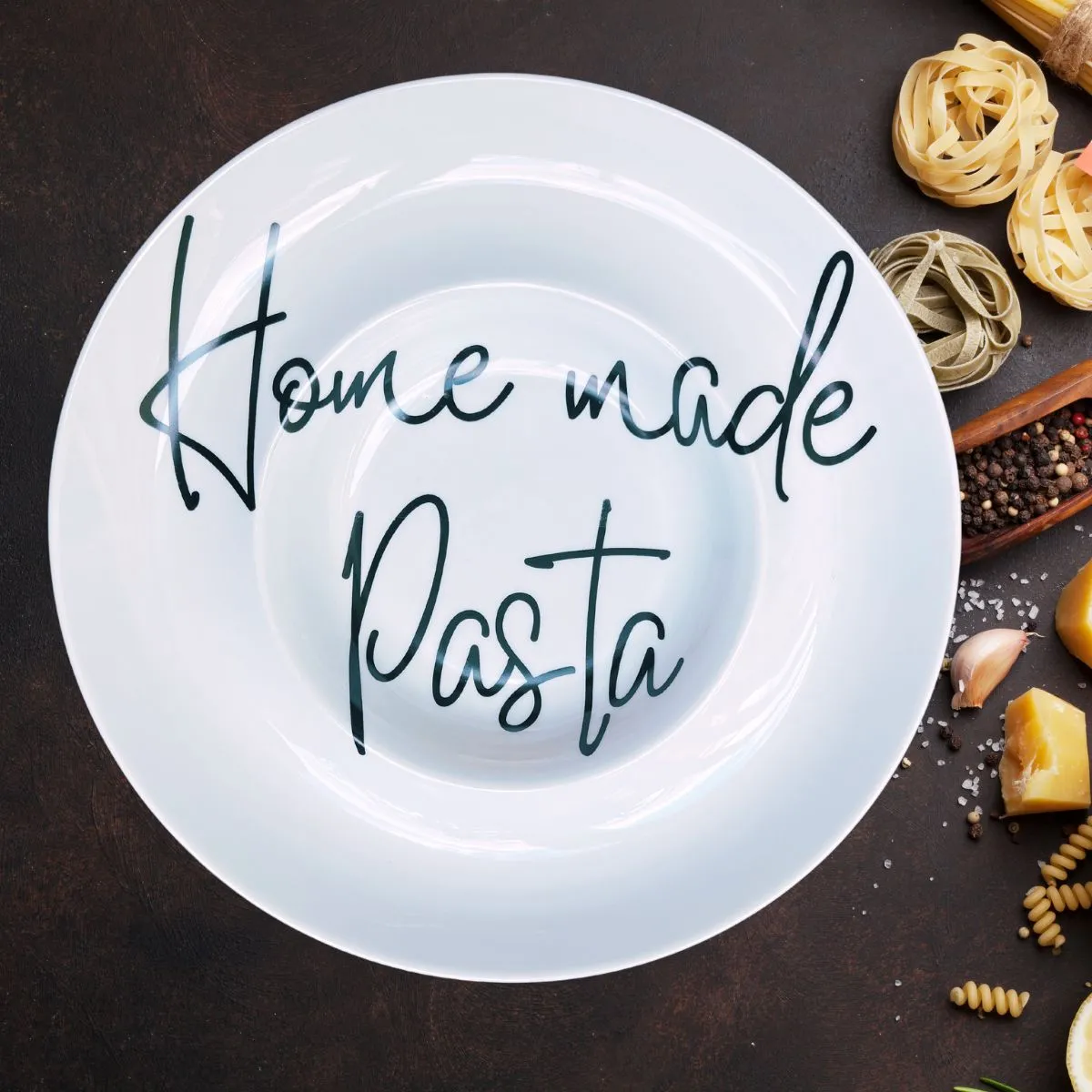 Setul include 2 farfurii cu decor HOME MADE PASTA.